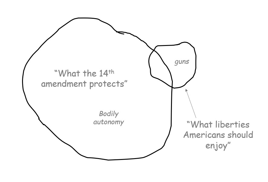 In their thinking, the Constitution, while conferring a right to have a gun, confers no right to “privacy”, by which they mean basic personal autonomy to make life decisions regarding sex, marriage, or your own body.