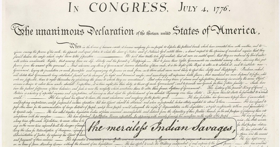 Your knowledge of history should run a little deeper than what the Declaration of Independence says: “the inhabitants of our frontiers, the merciless Indian Savages, whose known rule of warfare, is an undistinguished destruction of all ages, sexes and conditions.” In this description, the Founding Fathers were wrong.