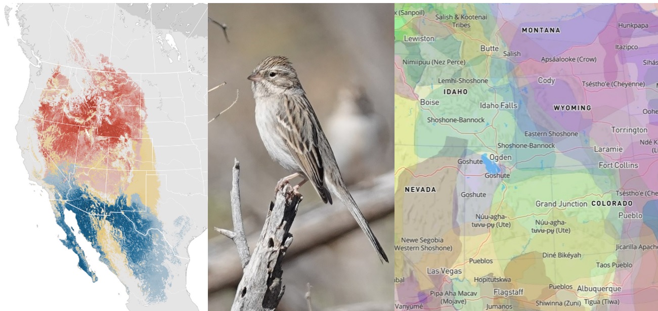 Brewer’s Sparrow (Shoshone Sparrow in Norway) range and traditional Native lands.